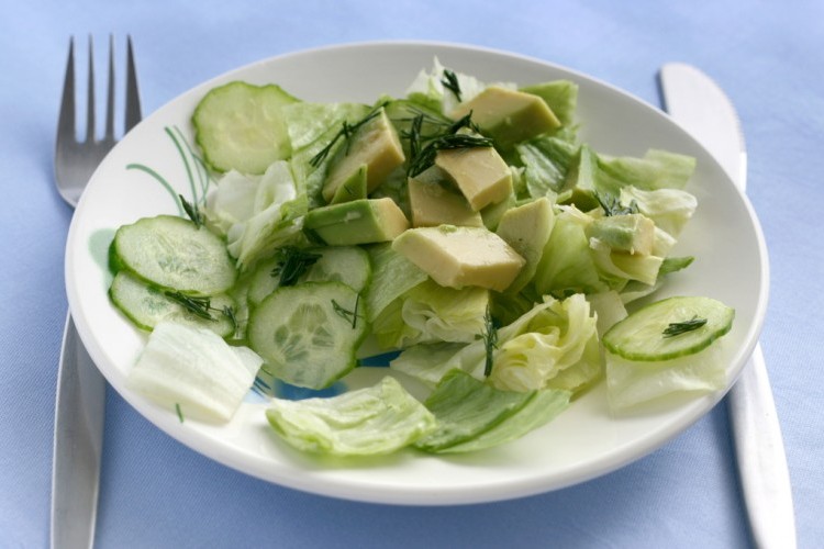 - اخلطي الأفوكادو والخس والخيار في طبق.