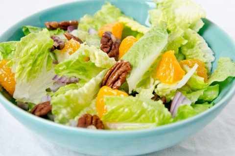- يغسل الخس ويقطع ونضيفة للبرتقال.