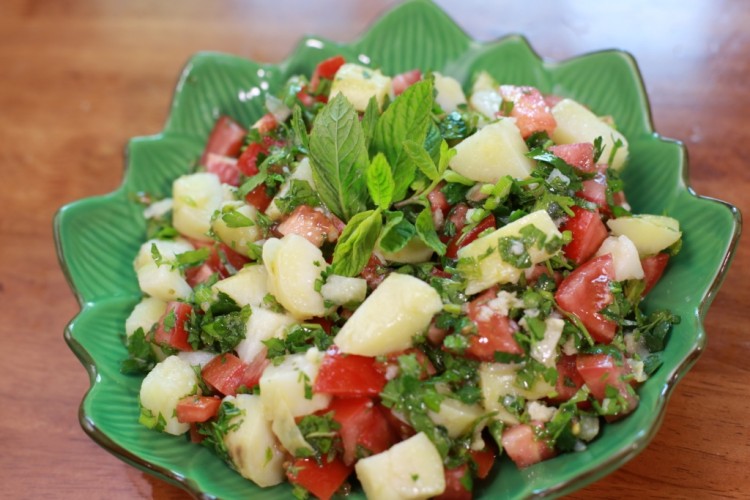 9. زيني الطبق بعود من النعناع الأخضر وقدمي سلطة البطاطس.