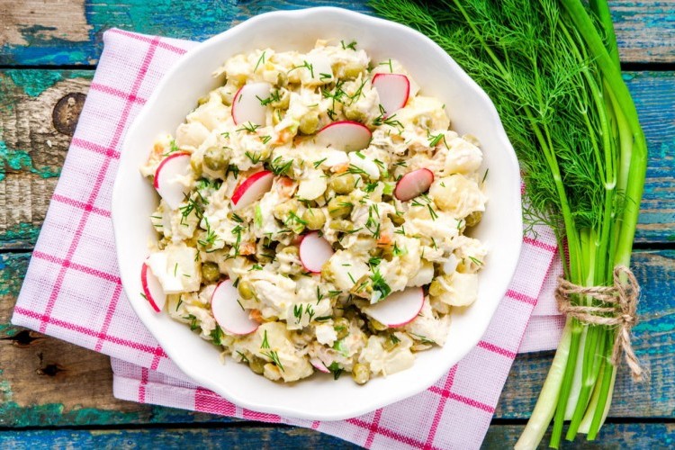 سلطة البطاطس مع الفجل والبصل الأخضر