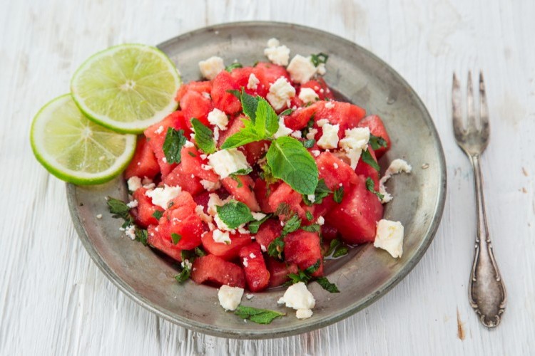 سلطة البطيخ بالجبن الأبيض للرجيم .. البطيخ فاكهة الصيف المنعشة، حضري منه سلطة رجيم مميزة وسعراتها الحرارية قليلة، وصفة سهلة وسريعة ومناسبة للرجيم