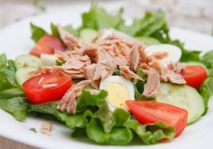 - نفرم الخس ونضيفه إلى البيض والتونة.