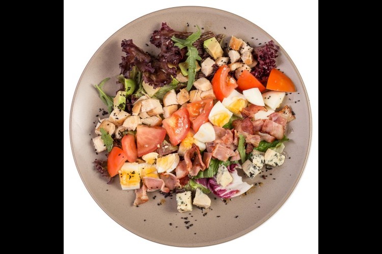 1. في صحن عميق، توضع جميع المكونات، وتغطي بالمايونيز وتقلب جيدًا.