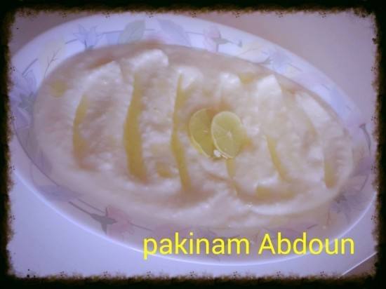 وقت التحضير 0 دقيقة وقت الطهي 0 دقيقة عدد الافراد 0 المقادير 200 جرام بطاطس مسلوقة 4 فصوص ثوم مفرومين ملعقة كبيرة ونصف مايونيز نصف معلقة كبيرة خل ملعقة كبيرة زيت زيتون خطوات التحضير فی الكبة نضع كل المقادير مع بعض . ونضرب الخليط حتى يصبح الخليط كريمی ونقدمها .