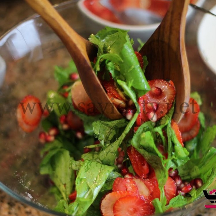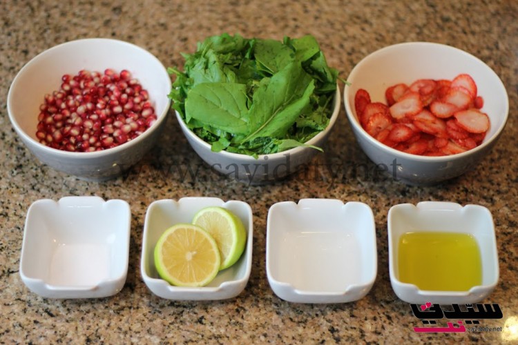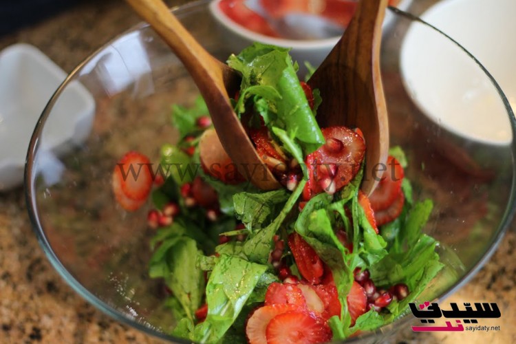 سلطة الجرجير مع شرائح الفراولة والرمان خطوة بخطوة