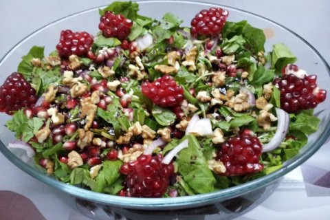 - . في طبق التقديم ضعي الجرجير والرمان،وزعي الصلصة وقدمي السلطة مباشرة.