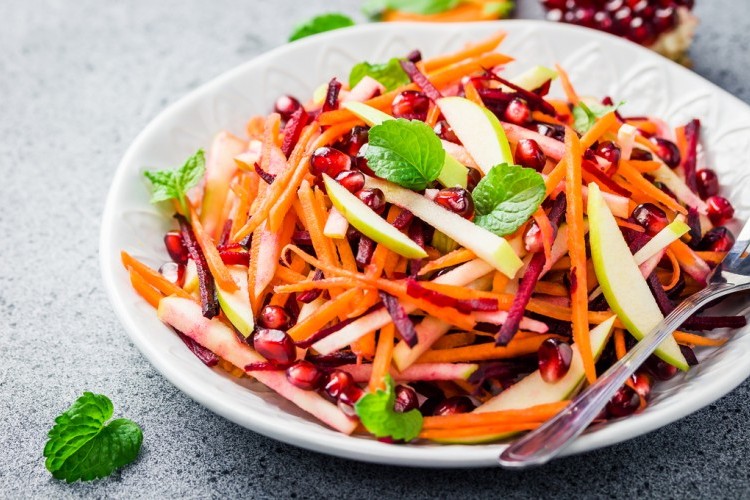 - أضيفي حبات الرمان وامزجي حتى تتجانس وقدميها فوراً.