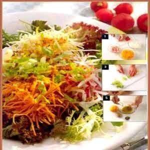 4. يسكب مزيج الثوم والحامض فوق الجزر والفجل ويحرك جيداً