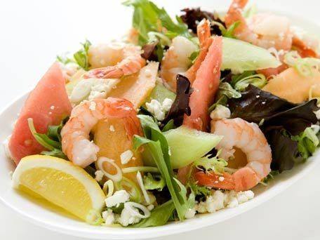 سلطة الجمبري بالباذنجان والفاصوليا