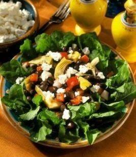 - قطعي الطماطم إلى أنصاف، قطعي الفلفل إلى شرائح ثم ضعي الخرشوف والفلفل والطماطم والجرجير في طبق التقديم واسكبي عليه صلصة الريحان