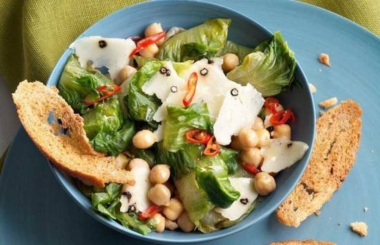 - نقوم بخلط المقادير في اناء بالترتيب الحمص والطماطم والخس والخيار وحبوب الذره والجزر والفلفل الرومي والفاصوليا الحمراء.