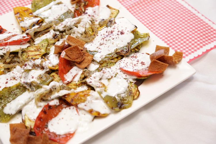 6. وزعي صلصة اللبن الزبادي فوق الخضار المشوية.