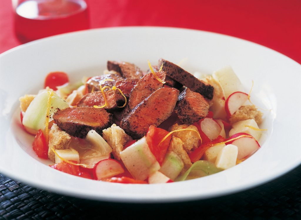 وصفة اليوم: “سلطة الخيار والطماطم وجبن الماعز مع لحم الضأن المشوي”