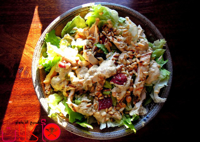 سلطة الدجاج بالكاري مؤلفة من الدجاج المقطع الى مكعبات ويخلط مع الزبيب، التفاح، العنب، البصل، الكرفس، الخس، والفستق السوداني للزينة، يمكن تقديم هذه الوصفة مع الحساء المفضل.