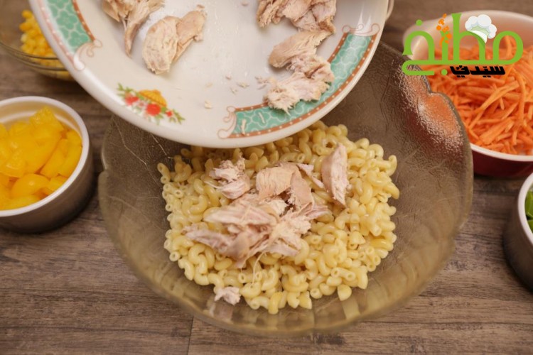 سلطة الدجاج بالمكرونة خطوة بخطوة بالصور
