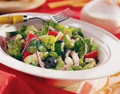 4. نخلط حبات الزيتون والطماطم والخيار والخس والبصل بالمايونيز ونضيف القليل من الملح وتقدم