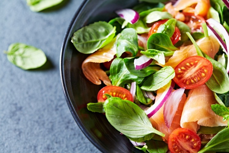 سلطة السبانخ مع السلمون