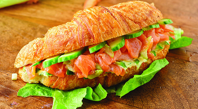 يضاف الخيار أو الأفوكادو إذا كانت هناك رغبة في ذلك ويُقدم الكرواسان.