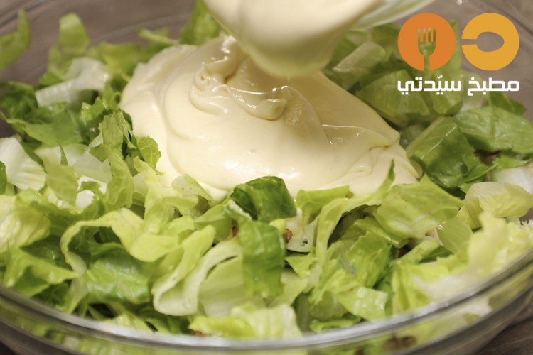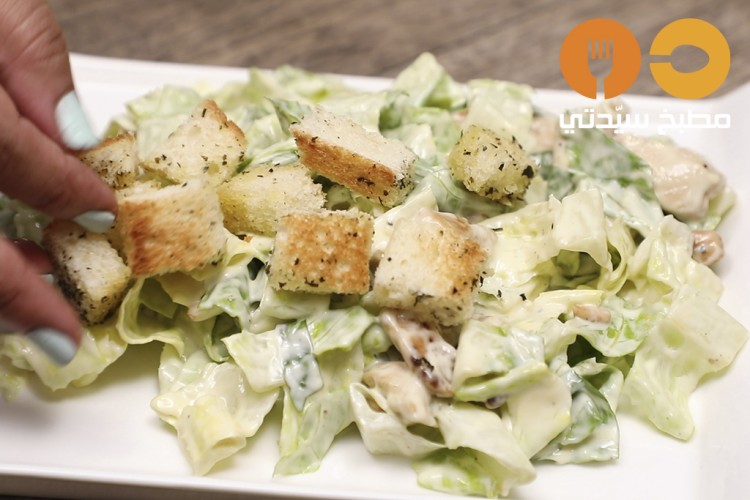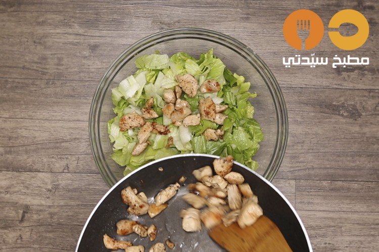 سلطة السيزر بالدجاج خطوة بخطوة بالصور