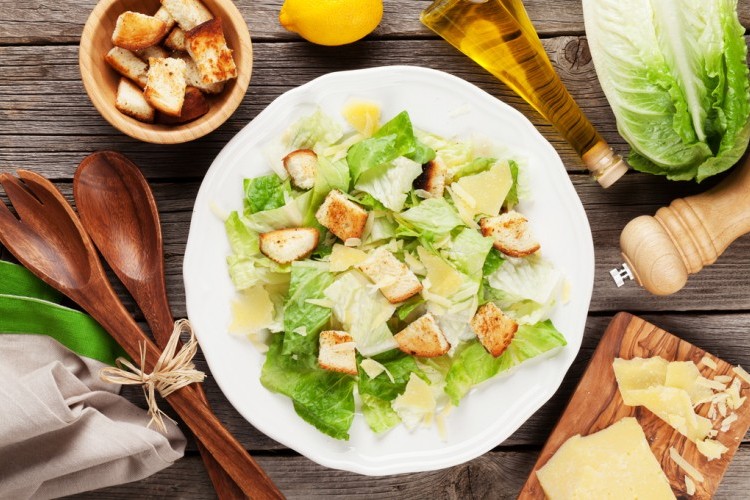 - أضيفي مكعّبات الكروتون وقدّمي السلطة.