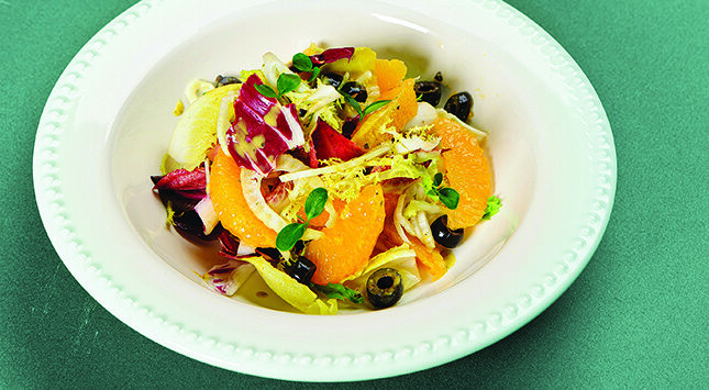 Home وصفاتسلطة الشمر والبرتقال بتتبيلة الخل والزيتون الأسود