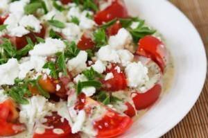 - ترص شرائح الطماطم فى طبق السلطة, ثم يوضع فوقها جبن الموزريلا.