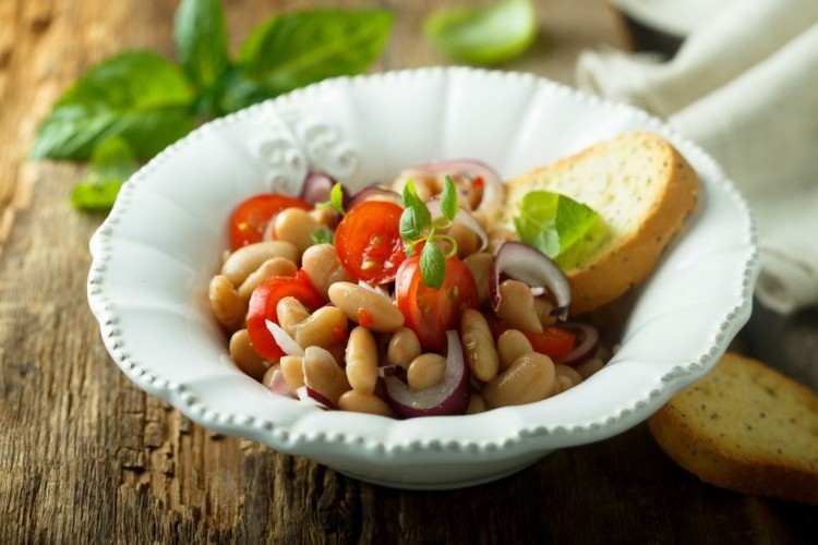 سلطة الطماطم مع الفاصوليا البيضاء والريحان