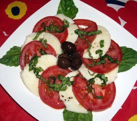 - رتبي بعض قطع الطماطم في طبق التقديم ورتبي فوقها الجبنة فوق كل حبة طماطم