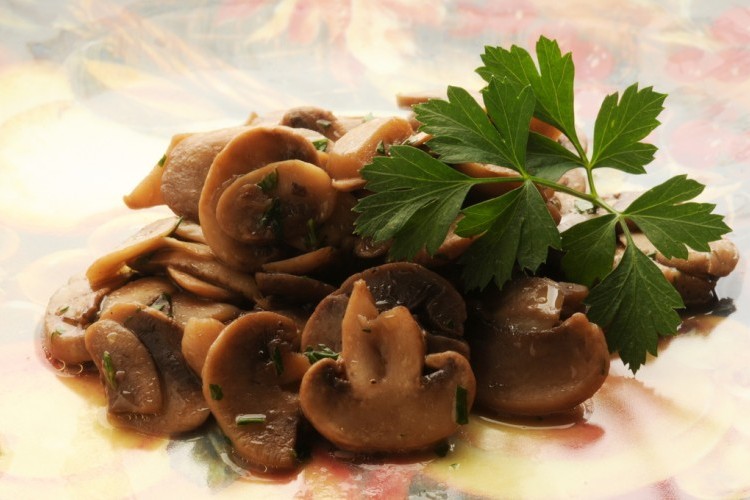 - يوضع الفطر في وعاء زجاجي متوسط الحجم مع إضافة صوص العنب الأحمر ويتم التقليب برفق ويترك لمدة 10 دقائق على الأقل حتى يذبل الفطر ويتشرب بالصلصة، ويضاف الملح والفلفل الأسود.