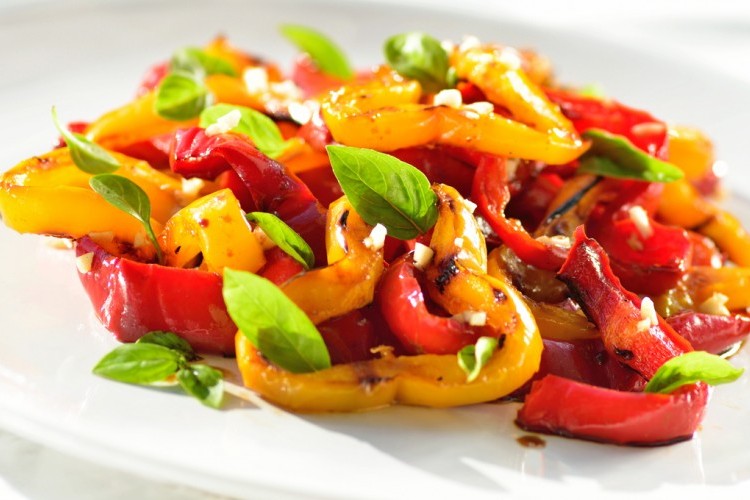- ضعي الفلفل في طبق التقديم ووزعي عصير الليمون وخل البلسمك والريحان وقدميها دافئة أو باردة حسب الرغبة.