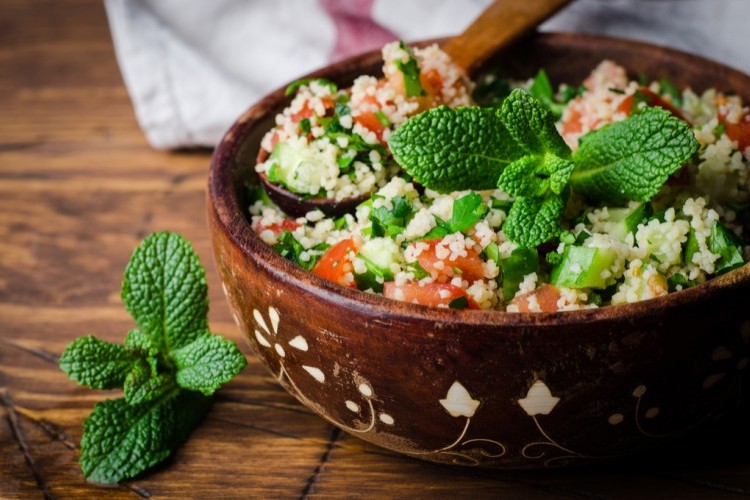 3. اغلي الماء واخلطيه بالزيت وبشر الليمون والملعقة المتبقية من الملح وأضيفي المزيج فوق الكسكس في الوعاء.