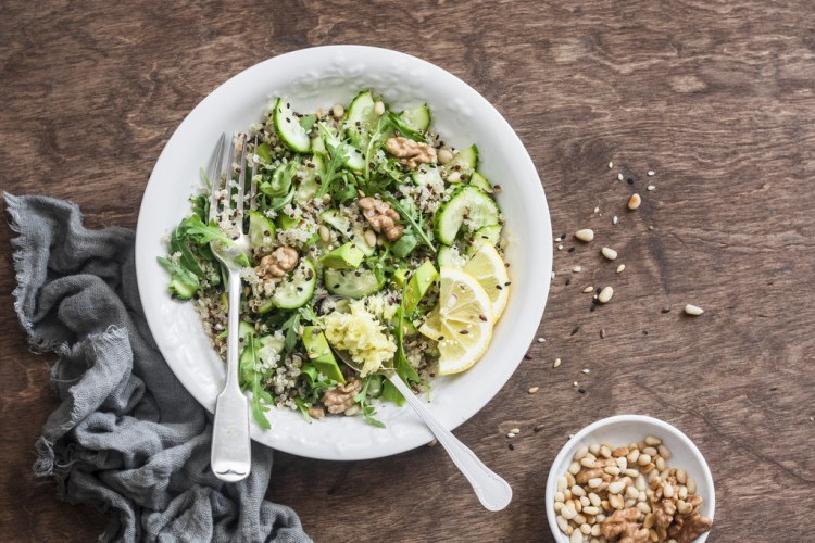 سلطة الكينوا مع الخس … تعمل الكينوا ولغناها بالألياف على مساعدة وتحسين وظائف الجهاز الهضمي وتنشيط حركة الأمعاء، حضري أطيب السلطات السهلة والصحية والمفيدة مع مطبخ اكلات