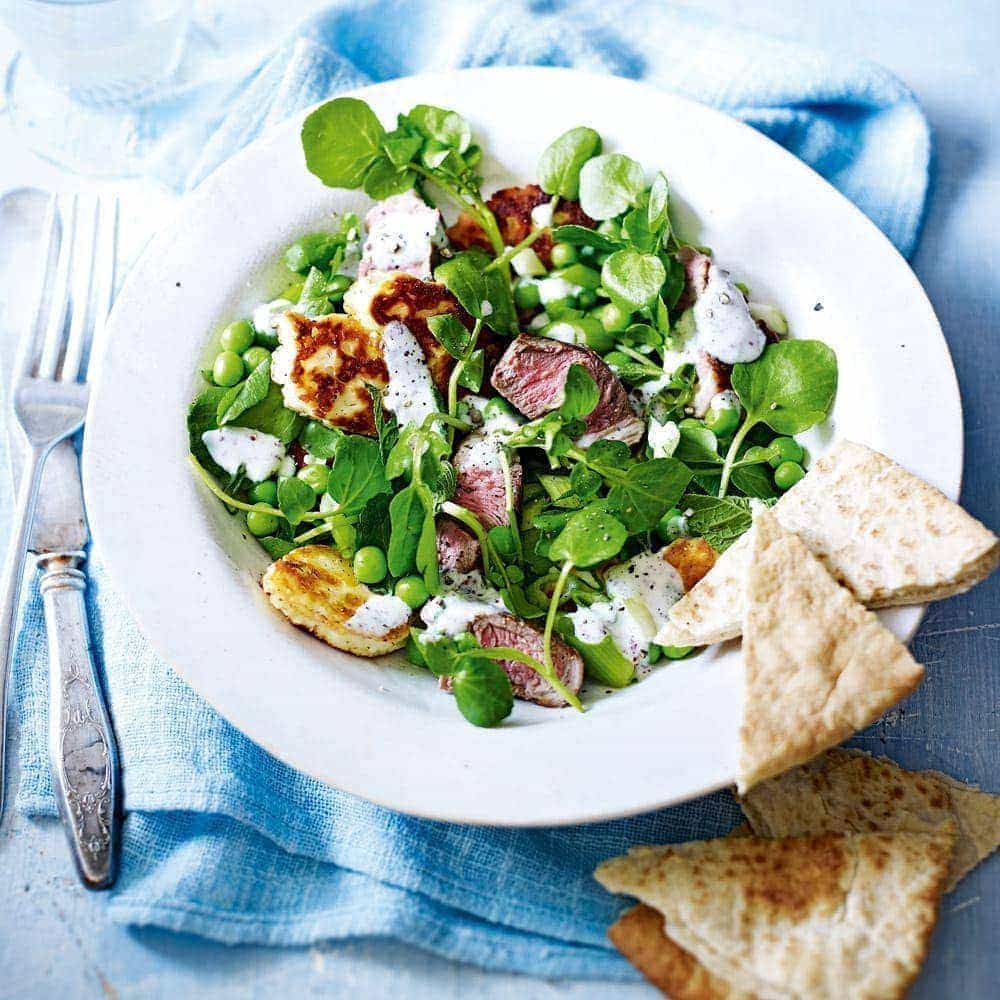 تجربي الآن هذه الوصفة اليونانية الرائعة لسلطة اللحم والحلومي وتمتعي بوجبة غنية بالحديد وحيوية تناسب شخص واحد. شاركينا تجربتك والمذاق الذي حظيتِ به بعد تحضير الوصفة.
