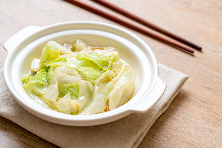 - أضيفي الملفوف المفروم والماء وحركي المزيج واتركيه على النار لمدة 6 – 8 دقائق حتى يذبل الملفوف.