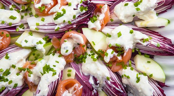 سلطة الهندباء الأنديفية مع السلمون المدخن