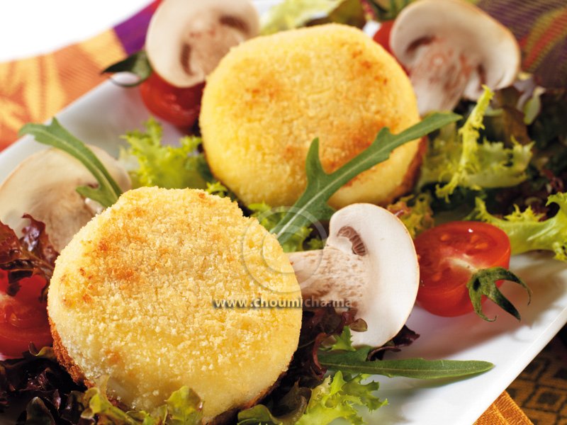- تمرر دوائر الجبن في الزبدة المذابة ثم تلبس بلباب الخبز المطحون والمنخول ثم توضع في المجمد لمدة ساعتين.