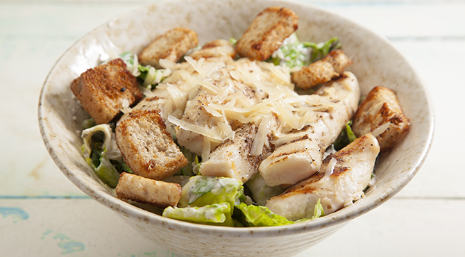 يقسم صدر الدجاج إلى شرائح رقيقة، تتبل بالملح والفلفل وتشوى حتى تنضج.