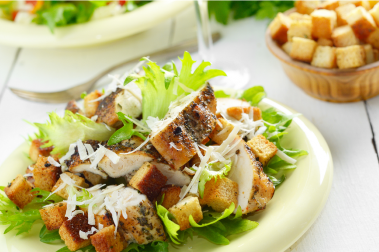 سلطة سيزر بالدجاج بسعرات حرارية أقل للرجيم .. ستمنحك هذه الوصفة من سلطة السيزر الشعور بالشبع لفترة طويلة، أعديها على طريقة مطبخ اكلات بأقل السعرات الحرارية