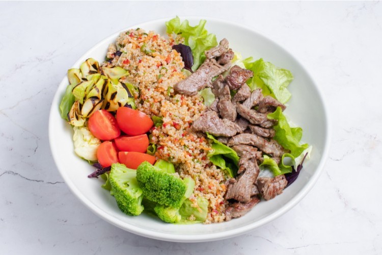 سلطة كينوا بالستيك … من أكثر الأطباق الصحية التي يمكن تناولها كطبق جانبي، أو كوجبة أساسية إن تم إضافة نوع من أنواع اللحوم إليها مثل لحم الستيك، جربيها على طريقة مطبخ اكلات وتمتعي بطعمها الشهي والمشبع