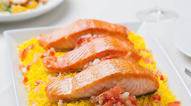 سلمون مشوي بالصلصة
