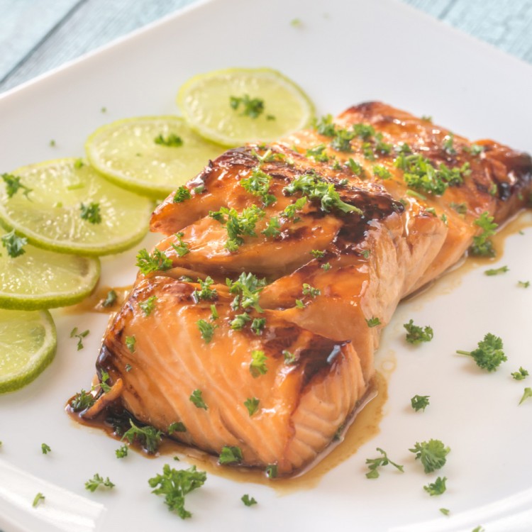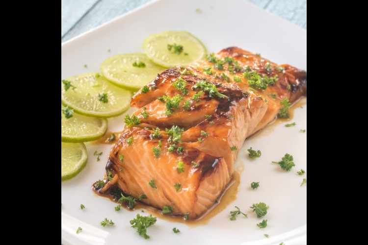 4. ارفعي السلمون من الطبق وضعيه في صحن التقديم.