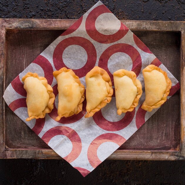 سمبوسة جبنة مع مخلل الفلفل الأخضر الحار