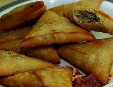 - ندهن أطراف ورقة السمبوسك بالماء حتى لاتفتح أثناء القلي ونحشيها و نغلقها على شكل مثلث ونقليها حتى تحمر وتقدم