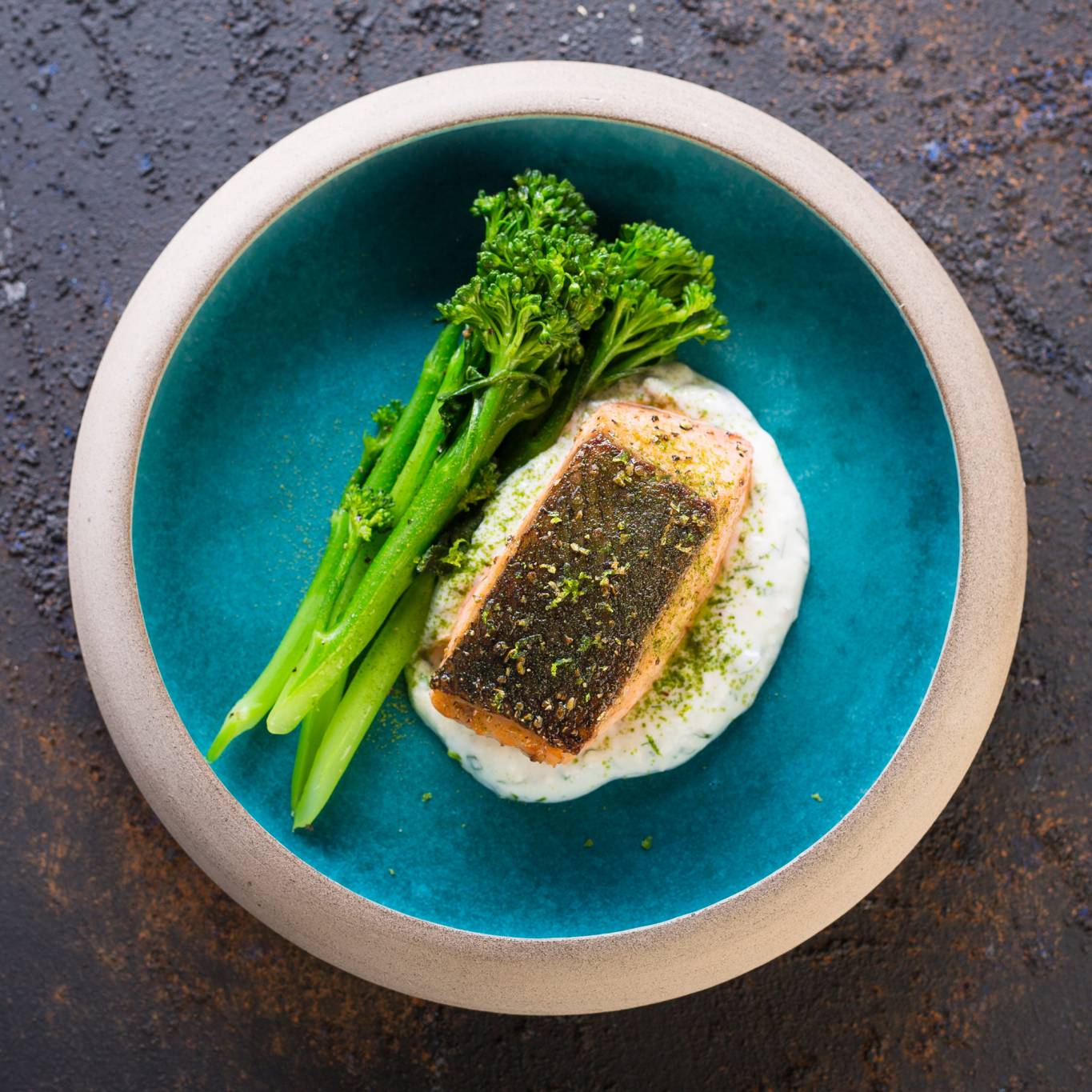 قم بدهن البروكوليني بالفرشاة بزيت الزيتون ، مشوي لمدة دقيقة واحدة من كل جانب. يُتبل بالملح والفلفل الأسود ويكون جاهزًا للتقديم