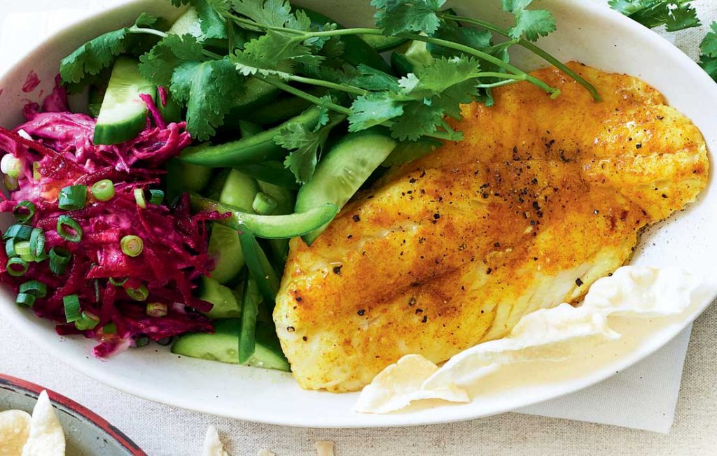 استمتعوا بوجبة الأسماك الأسبوعية مع هذه الوصفة الذهبية للسمك المتبل مع رايتا البنجر التي تقدم الألوان الزاهية والمذاق الرائع.
