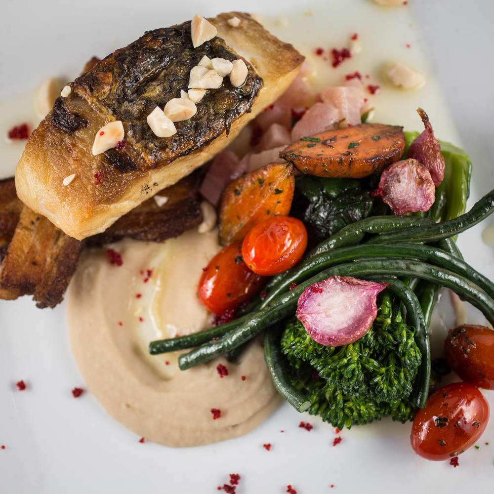 إقتراحات لطبق السمك بطريقة البحر المتوسط مع بيوريه الفاصوليا البيضاء