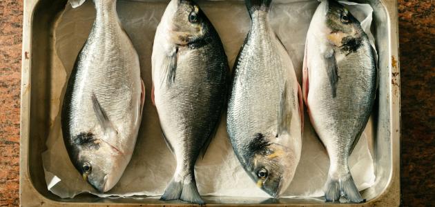 - ندهن صينية التحضير بزيت الزيتون، ونرص قطع السمك فيها ثمَّ نزينها بقطع الليمون والبقدونس، وندخلها إلى الفرن حتَّى ينضج