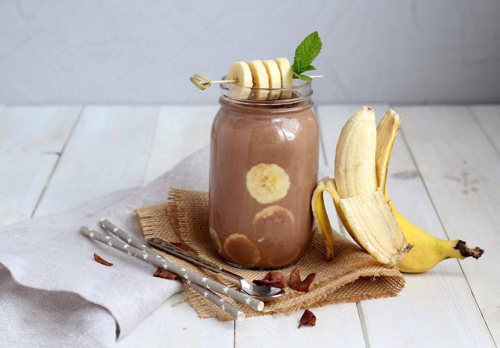 - ضعي باقي كمية سموثي الشيكولاتة على حلقات الموز ثم قدمية.