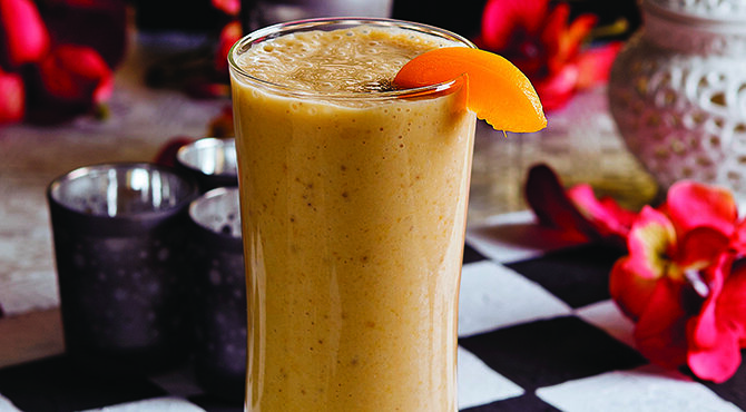 تخلط جميع المكونات معًا في الخلاط الكهربي، ثم يقدم المشروب.