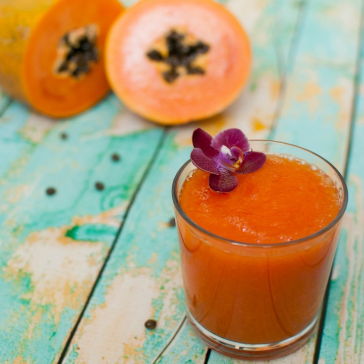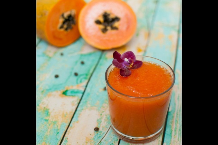 1. ضعي البابايا المقطعة والتمر والحليب في الخلاط الكهربائي واخلطي حتى يصبح المزيج ناعماً.